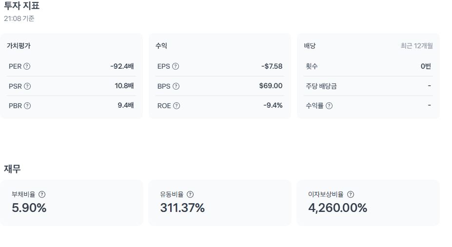 배당 이력: 현재는 배당을 지급하지 않으며, 자사주 매입 및 R&D 재투자에 집중하고 있습니다.